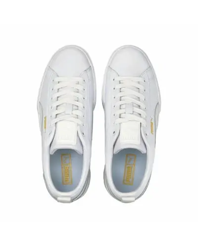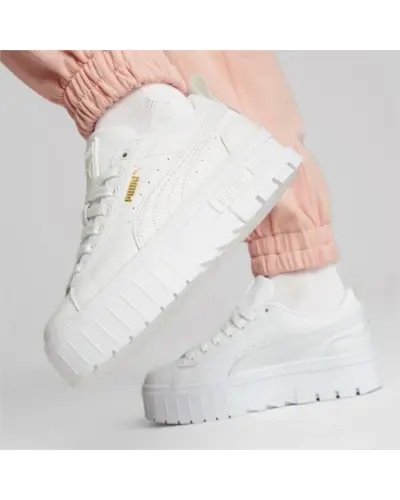 Get ready to find your style in Mayze. We made this one for the hype girls, the street enthusiasts, the trend mavens. This stand-out silhouette takes design inspiration straight from the streets, with a stacked sole and contrasting rubber tooling for an edgy, layered look. This execution features a full leather upper with a leather formstripe.