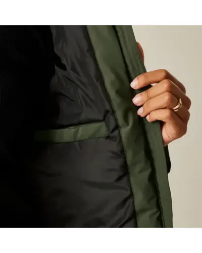 Női bélelt kabát 10000 mm, Női vízálló télikabát Thermoguard szigeteléssel meleg, praktikus, fenntartható, Ez a modern női kabát minden részletében a komfortot és a funkcionalitást képviseli. A vízálló és légáteresztő Isotex 10000 poliészter anyag, valamint a 140 g-os újrahasznosított Thermoguard szigetelés gondoskodik a száraz, meleg viseletről még a legzordabb napokon is. A ragasztott varrások, az állítható kapucni, és a kézmelegítő funkcióval ellátott alsó zsebek minden helyzetre praktikus megoldást kínálnak., Anyag: 100% poliészter Isotex 10000 (110 g/m?), Légáteresztő képesség: 10,000 g/m?/24 óra, Teljesen vízálló kivitel, ragasztott varrásokkal, 140 g-os újrahasznosított Thermoguard szigetelés, Fix kapucni állítható húzózsinórral, 2 nagyméretû alsó patch zseb kézmelegítő cipzáras nyílással, Belső biztonsági zseb, Pattintós állítható mandzsetták, Tartós vízlepergető bevonat, Újrahasznosított alapanyagból készült fenntartható választás, Ideális városi viselet, kirándulásokhoz vagy hétköznapi használatra, Védelem eső, szél és hideg ellen stílusosan