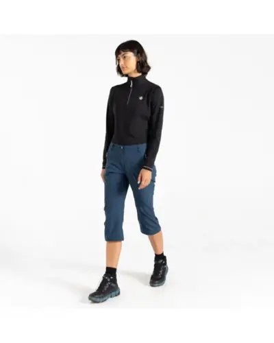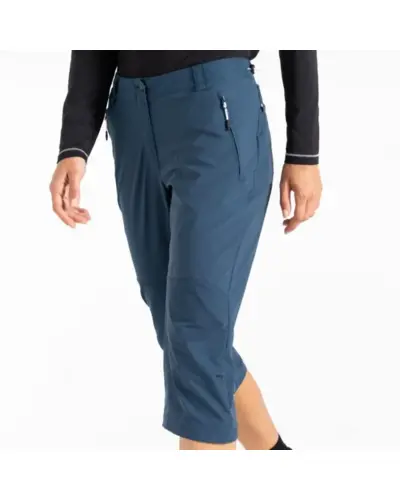 női capri, Rugalmas nylon/elasztán anyag, Víztaszító felület, Állítható, húzózsinóros derék, Cipzáros slicc, Több zsebbel, Két cipzáros oldalzsebbel, Húzózsinórral állítható lábszár szegély
