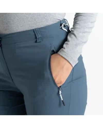 női nadrág, Rugalmas nylon/elasztán anyag, Víztaszító felület, Állítható, húzózsinóros derék, Cipzáros slicc, Több zsebbel, Két cipzáros oldalzsebbel, Húzózsinórral állítható lábszár szegély, Megerősített lábszár szegély