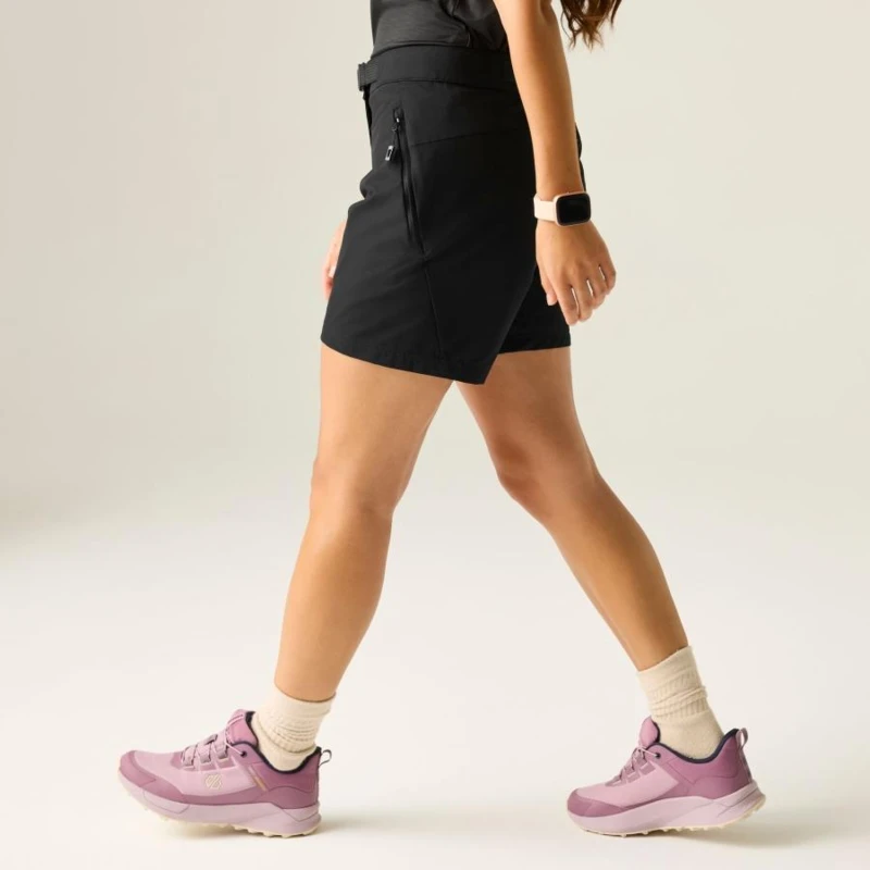 Női short, Prémium női technikai túranadrág – ILUS Lite ultra stretch, karcsúsított szabás, UPF 50+, Ez a női technikai nadrág könnyû, 50% újrahasznosított poliészter / 50% poliészter ultra stretch anyagból készült, ILUS Lite konstrukcióval. A rugalmas, alacsony súlyú kialakítás szabad mozgást biztosít aktív használat során, míg a szélálló tulajdonság csökkenti a szélhûtést változékony időjárási körülmények között. A tartós vízlepergető bevonat és a kopásálló szerkezet hosszú távú megbízhatóságot garantál., Főbb jellemzők:, Könnyû, ultra stretch 50% újrahasznosított poliészter / 50% poliészter anyag – ILUS Lite, Tartós vízlepergető bevonat, PFC-, PFOA- és PFOS-mentes kivitel, Cipzáras funkcionális zsebek és cipzáras slicc, Szélálló konstrukció a szélhûtés minimalizálására, Levehető hevederes öv, Ipari minőségû, kopásálló anyag a fokozott tartósságért, UPF 50+ UV-védelem, Karcsúsított szabás, Ajánlott: Női technikai túranadrágként ideális túrázáshoz, trekkinghez, kiránduláshoz és aktív szabadtéri programokhoz. Kiváló választás, ha fontos a könnyû súly, a mozgásszabadság és a tartósság., Fenntarthatóság: Az újrahasznosított poliészter tartalom és a PFC-mentes kivitel csökkenti a környezeti terhelést, miközben hosszú élettartamú, strapabíró konstrukciót biztosít.