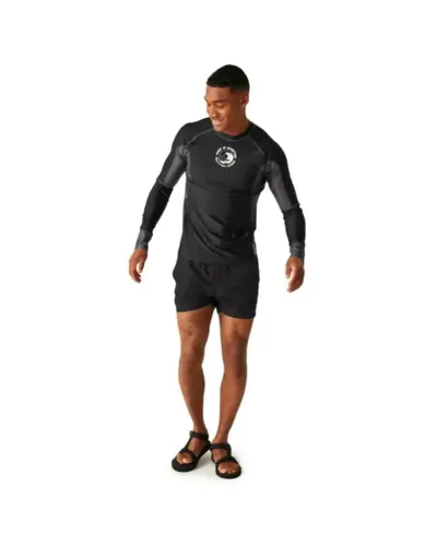 Férfi Lycra , Újrahasznosított 85% poliészter/15% elasztán anyag, Gyors száradás, Magas galléros kialakítás, Lapos varratok, UV-védelem (UPF) 50+