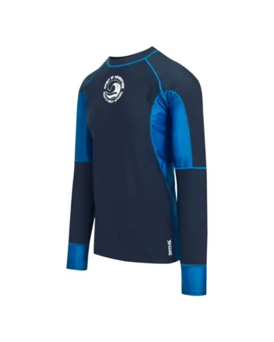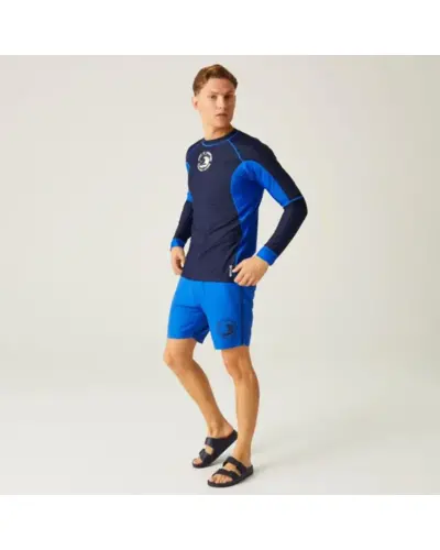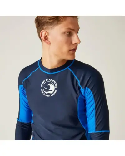 Férfi Lycra , Újrahasznosított 85% poliészter/15% elasztán anyag, Gyors száradás, Magas galléros kialakítás, Lapos varratok, UV-védelem (UPF) 50+