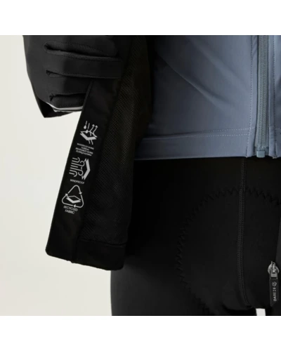 Férfi kerékpáros technikai esőkabát, Prémium férfikerékpáros kabát RIDE FIT szabás, ARED 10/30K, UPF 50+, Ez a férfitechnikai kerékpáros kabát RIDE FIT ergonomikus szabással készült, amely a kerékpározási testhelyzethez igazodik, anatómiailag formázott kialakítással a maximális komfort és mozgásszabadság érdekében. Az ARED 10/30K újrahasznosított poliészter anyag 10 000 mm vízállóságot és kiemelkedő, 30 000 g/m?/24 óra légáteresztést biztosít, így intenzív tekerés közben is száraz és komfortos viseletet nyújt., Főbb jellemzők:, RIDE FIT ergonomikus, kerékpáros testhelyzethez tervezett szabás, ARED 10/30K újrahasznosított poliészter vízálló és légáteresztő anyag, 10 000 mm vízállóság, 30 000 g/m?/24 óra légáteresztés, Ragasztott varratok a teljes vízálló védelemért, Oldalsó szellőzőpanelek, Előformázott ujjak és hosszított hátrész az optimális kerékpáros illeszkedésért, Fényvisszaverő részletek a fokozott láthatóságért, Elasztikus, hosszított mandzsetták a kéz melegen tartásáért, Vízlepergető elülső cipzár belső takarással és állvédővel, 1 vízálló cipzáras mellzseb, Cipzáras hátsó zseb a biztonságos tárolásért, Belső mobiltelefon zseb, Állítható gumizsinóros alsó szegély, UPF 50+ UV-védelem, Ajánlott: férfikerékpáros kabátként ideális országúti és terepkerékpározáshoz, edzéshez és hosszabb túrákhoz változékony időjárási körülmények között. Kiváló választás, ha fontos a vízállóság, a légáteresztés és a testhelyzethez optimalizált illeszkedés., Fenntarthatóság: Az újrahasznosított poliészter alapanyag csökkenti a környezeti terhelést, miközben tartós, nagy teljesítményû konstrukciót biztosít rendszeres használat mellett is.