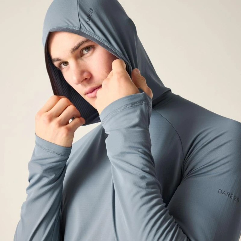 Férfi technikai felső, Prémium férfi technikai kapucnis felső – QUICK DRY & FRESH, tengervízálló, UPF 50+, Ez a férfi technikai felső könnyû, texturált, 90% újrahasznosított poliészter / 10% elasztán stretch anyagból készült. A QUICK DRY & FRESH technológia hatékonyan elvezeti az izzadságot, felgyorsítja a száradást és segít megelőzni a szagképző baktériumok kialakulását. A kopásálló konstrukció és a SeamSmart technológia biztosítja a tartósságot és a szabad mozgást intenzív használat során., Főbb jellemzők:, 90% újrahasznosított poliészter / 10% elasztán stretch anyag, Gyorsan száradó, nedvességelvezető konstrukció, Szintetikus vegyszermentes antibakteriális szagkontroll kezelés, SeamSmart technológia a szabad mozgásért, Ipari minőségû, kopásálló anyag a fokozott tartósságért, Beépített kapucni elasztikus kialakítással, Hüvelykujjbújtatók, UPF 50+ UV-védelem, Tengervízben történő használatra is alkalmas, Ajánlott: Férfi technikai felsőként ideális futáshoz, túrázáshoz, vízi sportokhoz és aktív szabadtéri programokhoz. Kiváló választás, ha fontos a gyors száradás, a mozgásszabadság és a fokozott UV-védelem., Fenntarthatóság: Az újrahasznosított poliészter alapanyag csökkenti a környezeti terhelést, miközben strapabíró, hosszú élettartamú konstrukciót biztosít rendszeres használat mellett is.