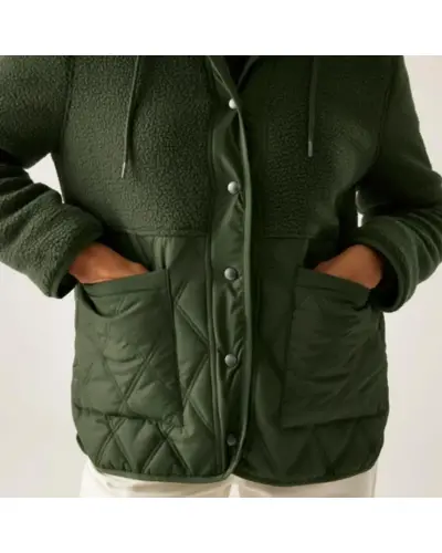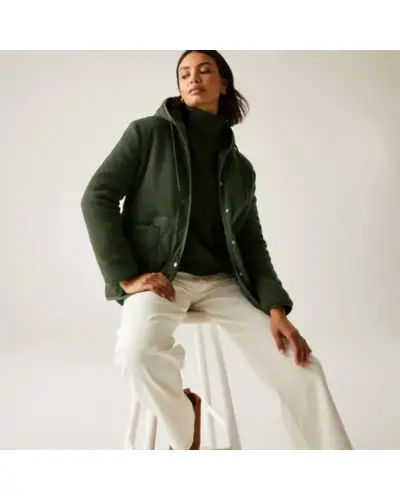 Női bélelt polárkabát, Női borg polárbéléses télikabát meleg, puha, stílusos, Ez a kabát a hideg napok tökéletes társa: kívül vízlepergető bevonatú, strapabíró micro taslan anyag, belül pedig vastag, puha borg polárbélés gondoskodik a kényelemről és a hőmegtartásról. A Thermoguard szigetelés extra meleget biztosít, miközben a stílusos kialakítás és a praktikus részletek a mindennapi viselet kedvencévé teszik., Anyag: 100% poliészter micro taslan a kapucninál és az alsó részen 85 g/m?, Bélés: 270 g/m? poliészter borg polár, Szigetelés: újrahasznosított Thermoguard 230 g/m?, Belső rész: 100% poliészter taft, Kapucni: húzózsinórral állítható, beépített, Záródás: patentos elülső placket, Zsebek: 2 nagy méretû, alsó foltzseb + belső biztonsági zseb, Fenntarthatóság: újrahasznosított anyagok felhasználásával készült, Ajánlott: mindennapi téli viselethez, városi sétákhoz és hétköznapi használatra, Meleg, puha és környezettudatos stílusos védelem a hideg ellen.