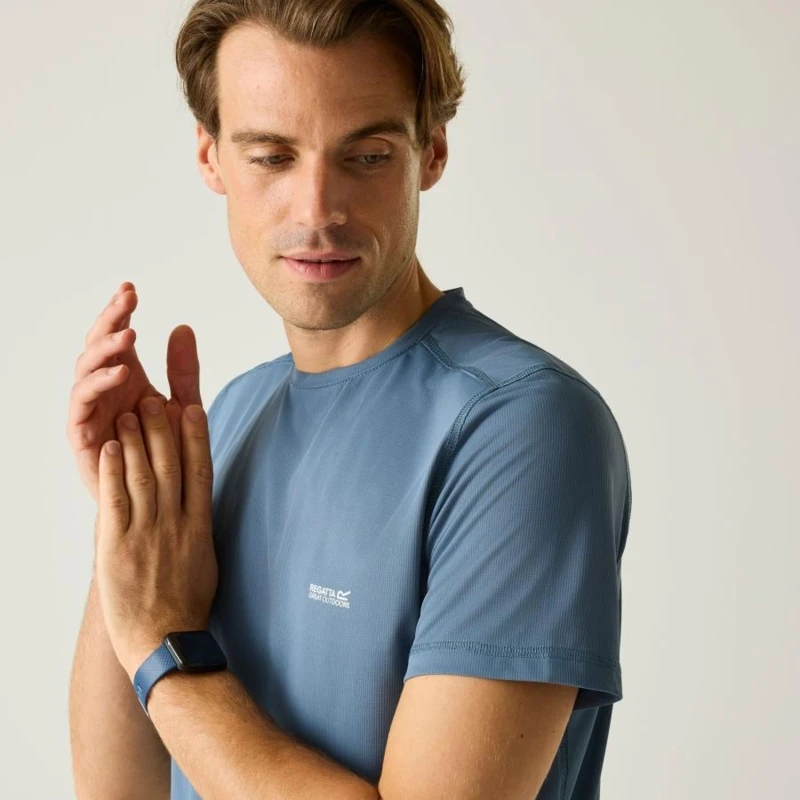 Férfi póló, Könnyû, technikai poliészter mesh anyag – gyorsan száradó, rovarriasztó kezeléssel, A 100% poliészter mesh szövet (90 g/m?) könnyû, jól szellőző szerkezetének köszönhetően hatékony nedvességelvezetést és gyors száradást biztosít. Ideális választás aktív szabadtéri használatra, meleg időjárási körülmények között is. A speciális rovarriasztó kezelés védelmet nyújt a csípő rovarok ellen, így fokozza a komfortérzetet túrázás, utazás vagy egyéb outdoor tevékenységek során., Főbb jellemzők:, 100% poliészter mesh technikai anyag, 90 g/m? könnyû, légáteresztő kivitel, Jó izzadságelvezető teljesítmény, Gyorsan száradó szövet, Rovarok elleni kezelés a csípések elleni védelemhez, Ajánlott:, Túrázáshoz, kiránduláshoz, trekkinghez, utazáshoz, kempingezéshez és minden olyan szabadtéri programhoz, ahol fontos a könnyû, gyorsan száradó, rovarvédelemmel ellátott technikai ruházat
