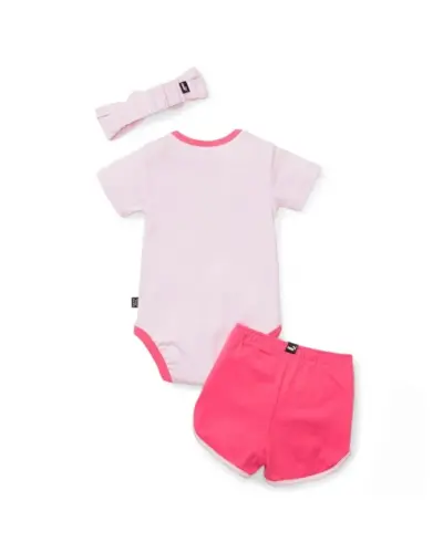 Three part newborn set with a No.1 Logo print onesie, shorts and head accessory