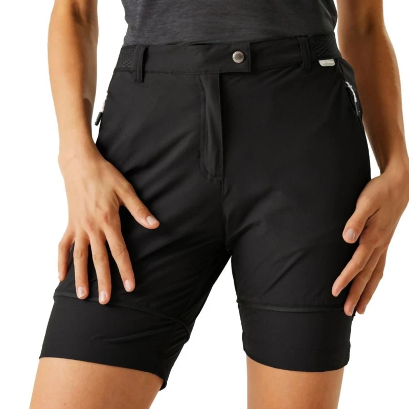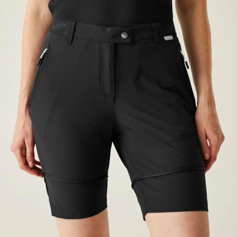 női technikai nadrág, Rugalmas 90% poliamid 10% elasztán Isoflex anyag, Tartós víztaszító felület, Részben gumírozott derékrész, Rugalmas csúszásmentes rész a derékon, Két cipzáros oldalzseb, Rövidnadrággá alakítható - lecipzározható szárak, Cipzáros bokarész