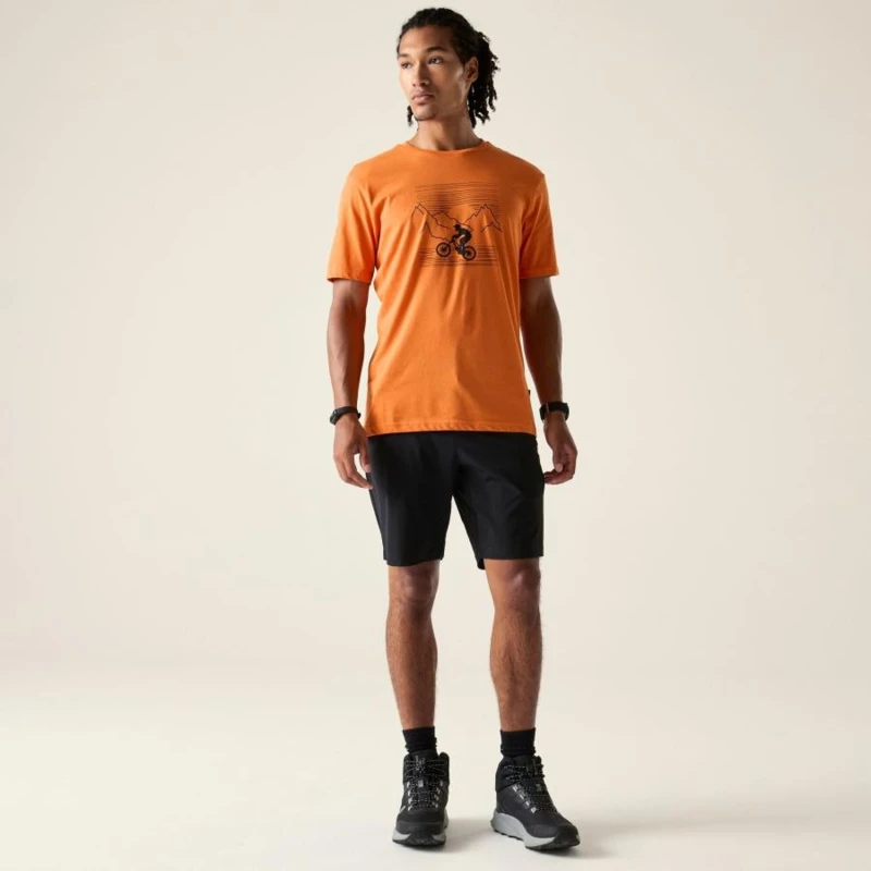 Férfi pamut póló, Puha és kényelmes pamut póló UV-védelemmel, BCI pamut single jersey szövet – puha, légáteresztő és fenntartható, Bordázott nyakkivágás a kényelmes illeszkedésért, Grafikus mintázat modern megjelenéssel, UV Shielding (UPF 50+) – kiváló napvédelem, Ez a kényelmes és stílusos pamut póló ideális mindennapi viseletre, szabadtéri programokhoz és nyári kirándulásokhoz. Légáteresztő anyaga kellemes viseletet biztosít, míg az UV-védelem extra védelmet nyújt a napsugarak ellen. A BCI pamut használata fenntartható döntés.