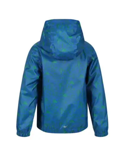 gyerek esőkabát, Hydrafort - vízálló 100% poliészter anyag, Ragasztott varrások, Tartós víztaszító felület, Teljes felületén mintás, Részben hálós, részben poliészter taft bélés, Gumis szegélyû, nem-levehető kapucni, Gumírozott mandzsetta, Két zseb az alján, Gumírozott alsó szegély, Fényvisszaverő berakásokkal