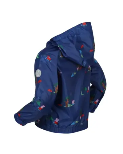 gyerek esőkabát, Hydrafort - vízálló 100% poliészter anyag, Ragasztott varrások, Tartós víztaszító felület, Teljes felületén mintás, Részben hálós, részben poliészter taft bélés, Gumis szegélyû, nem-levehető kapucni, Gumírozott mandzsetta, Két zseb az alján, Gumírozott alsó szegély, Fényvisszaverő berakásokkal