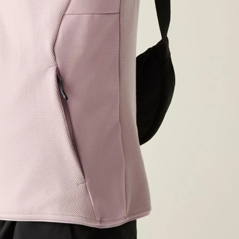 Női felső, Prémium női technikai kapucnis felső – jacquard szerkezet, újrahasznosított betétek, Reach Technology, Ez a női technikai kapucnis felső 72% poliészter / 25% pamut / 3% elasztán összetételû, 290 g/m? súlyú interest jacquard anyagból készült, amelyet 30% újrahasznosított tartalmú, hálós hátoldalú jersey betétek egészítenek ki 160 g/m? kivitelben. A strukturált anyag kellemes hőérzetet és modern megjelenést biztosít, míg a Reach Technology hónaljbetét maximális mozgásszabadságot és akadálytalan karmozgást tesz lehetővé aktív használat során., Főbb jellemzők:, 72% poliészter / 25% pamut / 3% elasztán jacquard anyag, 290 g/m?, 30% újrahasznosított jersey hálós hátoldallal, 160 g/m?, Reach Technology hónaljbetét a maximális mozgástartományért, Beépített kapucni húzózsinórral, 2 alsó cipzáras zseb, Rugalmas szegély a mandzsettán, Ajánlott: Női technikai kapucnis felsőként ideális túrázáshoz, kiránduláshoz, utazáshoz és aktív mindennapi viselethez. Kiváló választás hûvösebb időben, amikor fontos a komfort, a rugalmasság és a sportosan nőies megjelenés., Fenntarthatóság: Az újrahasznosított tartalmú betétek csökkentik a környezeti terhelést, miközben a tartós anyagszerkezet hosszú élettartamot biztosít. A minőségi kivitel több szezonon át megbízható használatot garantál.