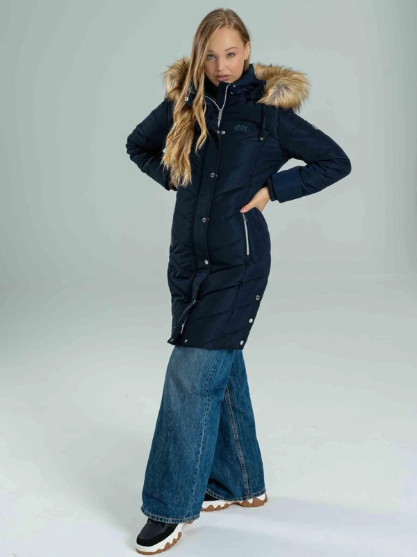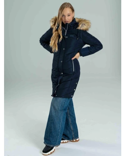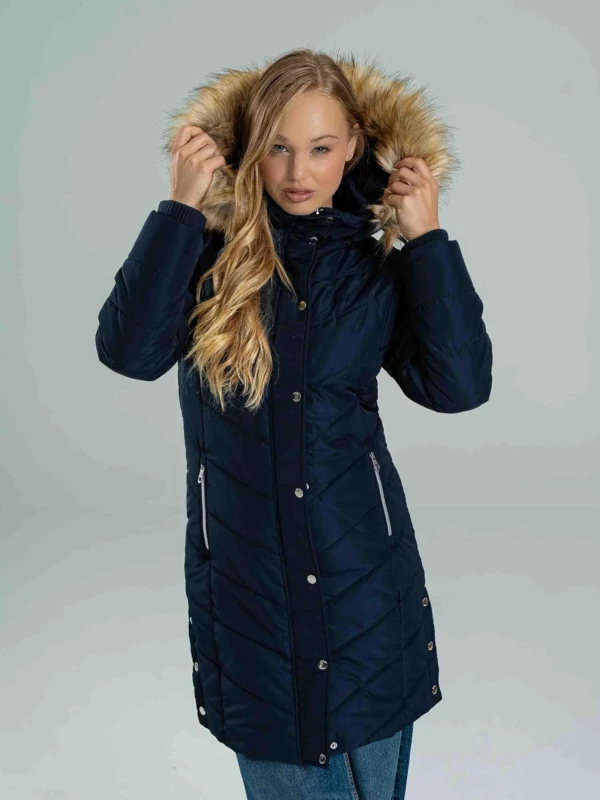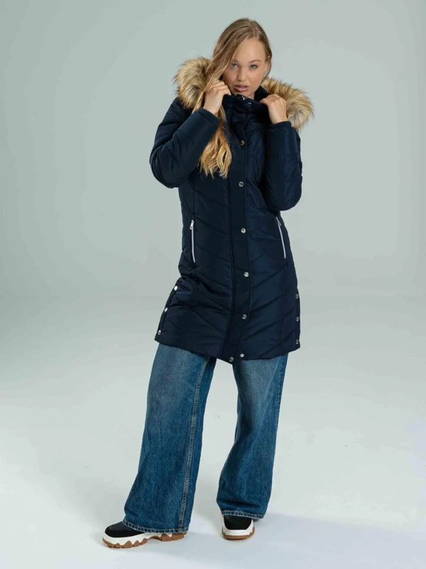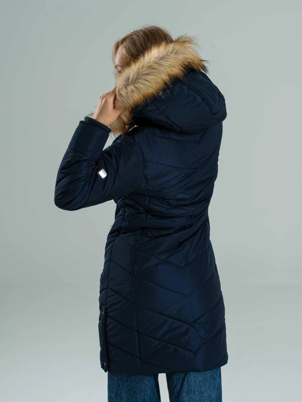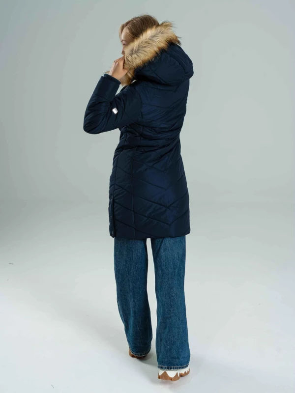 A NENA egy karcsúsított szabású, meleg télikabát, amely tökéletes választás a hideg hónapokra. 100% poliészter anyagból készült, így könnyû, mégis kiválóan szigetel. A fényes guminyomatos logó, a bal felkaron található fémnyomat logó, valamint a logózott gombok és cipzár modern, prémium megjelenést biztosítanak. A levehető szőrmés kapucni variálhatóvá teszi a kabátot, míg a kötött passzé fokozza a komfortérzetet és extra védelmet nyújt a hideg ellen. A modell 174 cm magas és S-es méretet visel.