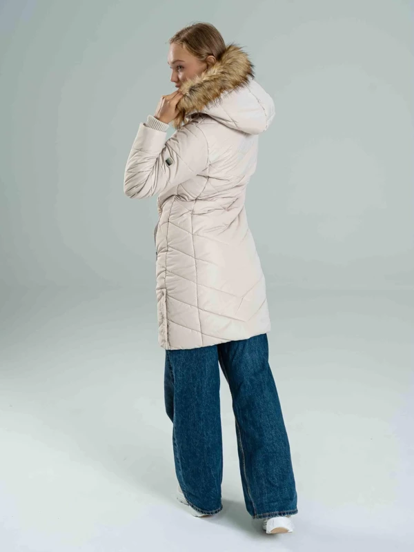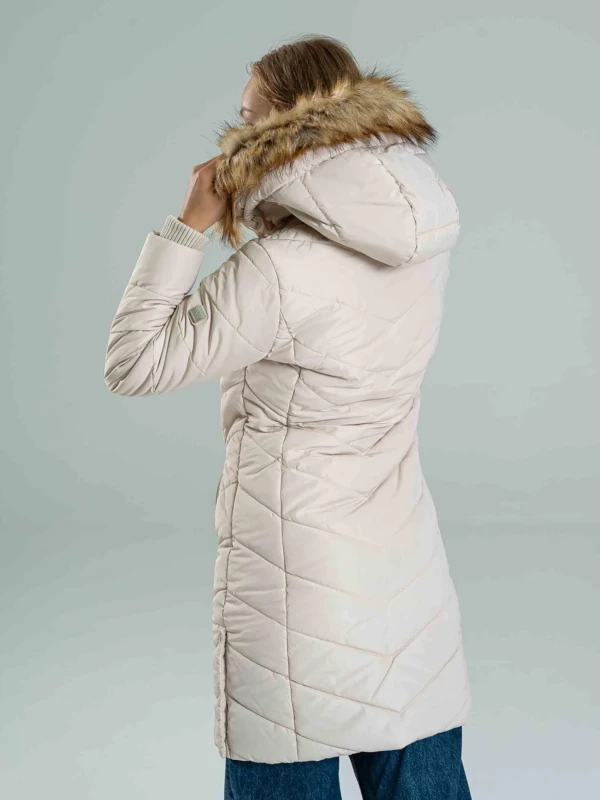 A NENA egy karcsúsított szabású, meleg télikabát, amely tökéletes választás a hideg hónapokra. 100% poliészter anyagból készült, így könnyû, mégis kiválóan szigetel. A fényes guminyomatos logó, a bal felkaron található fémnyomat logó, valamint a logózott gombok és cipzár modern, prémium megjelenést biztosítanak. A levehető szőrmés kapucni variálhatóvá teszi a kabátot, míg a kötött passzé fokozza a komfortérzetet és extra védelmet nyújt a hideg ellen. A modell 174 cm magas és S-es méretet visel.