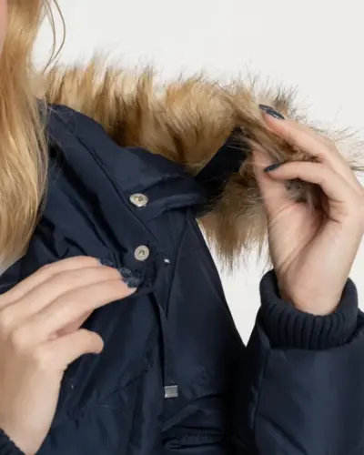 A NENA karcsúsított pufi télikabát 100% poliészter anyagból készült, stílusos és meleg választás a téli időszakra. A fényes guminyomatos logó és a bal felkaron található fémnyomat logó modern megjelenést ad, míg a logózott gombok és cipzár tovább emelik a kabát stílusát. A szőrmés kapucni levehető, így variálható a kabát viselése, a kötött passzé pedig kényelmes viseletet és extra védelmet biztosít a hideg ellen.