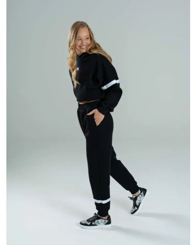 A NIA nadrág a CLEO pulcsihoz készült, így tökéletes párost alkot vele. A bal lábszárán található szövött, dekorációs szalag harmonizál a jobb oldalon elhelyezett finom hímzéssel, amely egyedi megjelenést kölcsönöz a darabnak. Kényelmes szabása és különleges részletei miatt ideális választás a hétköznapokban, ha fontos számodra a stílus és a komfort egyensúlya.\x0d\x0aA modell 174 cm magas és S-es méretet visel.