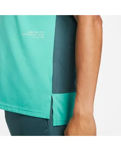 Nike Dri-FITMen\'s Short-Sleeve Training TopKEEP IT COOL AND MOVING.The Nike Dri-FIT Top brings comfort and cooling to your workout with fabric that has a cotton-like feel in the front, and breathable perforations in the back. Slits at the sides help you move naturally through every set, and unexpected graphic placement makes a statement while you do.Fabric in front feels soft against your skin.Dri-FIT technology helps keep you dry and comfortable.Perforations on the back help you stay cool.Slits on the sides create extra give for natural movement. More Details
