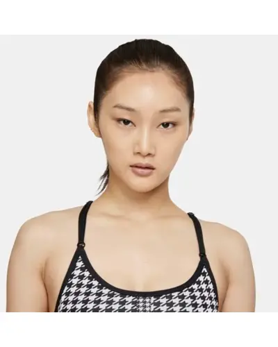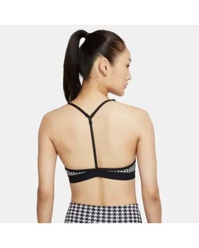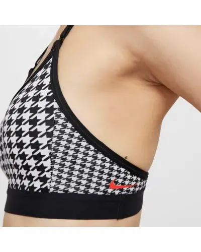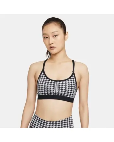 Nike Dri-FIT Indy Icon ClashWomen\'s Light-Support Padded T-Back Sports BraGENTLE SUPPORT WITH A POWERFUL PATTERN.The Nike Dri-FIT Indy Icon Clash Sports Bra features a houndstooth print in a softly supportive design that inspires confidence. Thin straps adjust easily so you can get your perfect fit. Smooth, lightweight fabric made with at least 75% recycled polyester fibers creates a look you can feel good in?and about.Stay DryNike Dri-FIT technology moves sweat away from your body for quicker evaporation, helping you stay dry and cool.Keep It CoolMinimal coverage on the back lets you move naturally while letting your skin breathe.Tailor Your FitThin straps adjust in the front to take the struggle out of changing up the fit. Removable pads slip in from the top so you can make quick adjustments. More Details