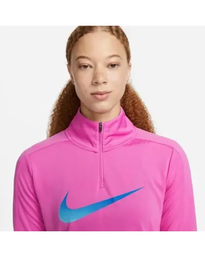 Throw it back to those high school track and field days in the Nike Dri-FIT Swoosh Half-Zip Long Sleeve Top. With sweat-wicking fabric and an adjustable half-zipper, you\'ll stay cool and comfortable during your runs. Fabric hugs your body and glides with you as you move for a focused feel and casual look.
