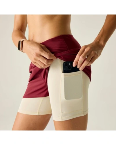 Női 2in1 short, Prémium női 2 az 1-ben sportshort – külső könnyû réteg, rugalmas belső nadrág, Ez a női technikai rövidnadrág 2 az 1-ben kialakítással készült: könnyû, szőtt külső short és 4 irányban rugalmas belső short kombinációjával. A magas, rugalmas derékrész stabil illeszkedést biztosít, míg a hátsó cipzáras biztonsági zseb praktikus tárolási lehetőséget kínál. A belső nadrág antibakteriális szagkontroll kezeléssel készült, a fényvisszaverő részletek pedig fokozzák a láthatóságot., Főbb jellemzők:, 2 az 1-ben kialakítás: könnyû külső short és 4 irányban rugalmas belső short, Magas, rugalmas derékrész hátsó cipzáras biztonsági zsebbel, Szintetikus vegyszermentes antibakteriális szagkontroll kezelés, Telefonzseb a belső shorton, Fényvisszaverő nyomat részletek a jobb láthatóságért, Könnyû, mozgásszabadságot biztosító konstrukció, Ajánlott: Női sportshortként ideális futáshoz, edzéshez, túrázáshoz és intenzív szabadtéri programokhoz. Kiváló választás, ha fontos a stabil tartás, a kényelmes rétegezés és a biztonságos tárolás., Fenntarthatóság: A tartós konstrukció hosszú élettartamot biztosít rendszeres használat mellett is, csökkentve a gyakori ruhacsere szükségességét.