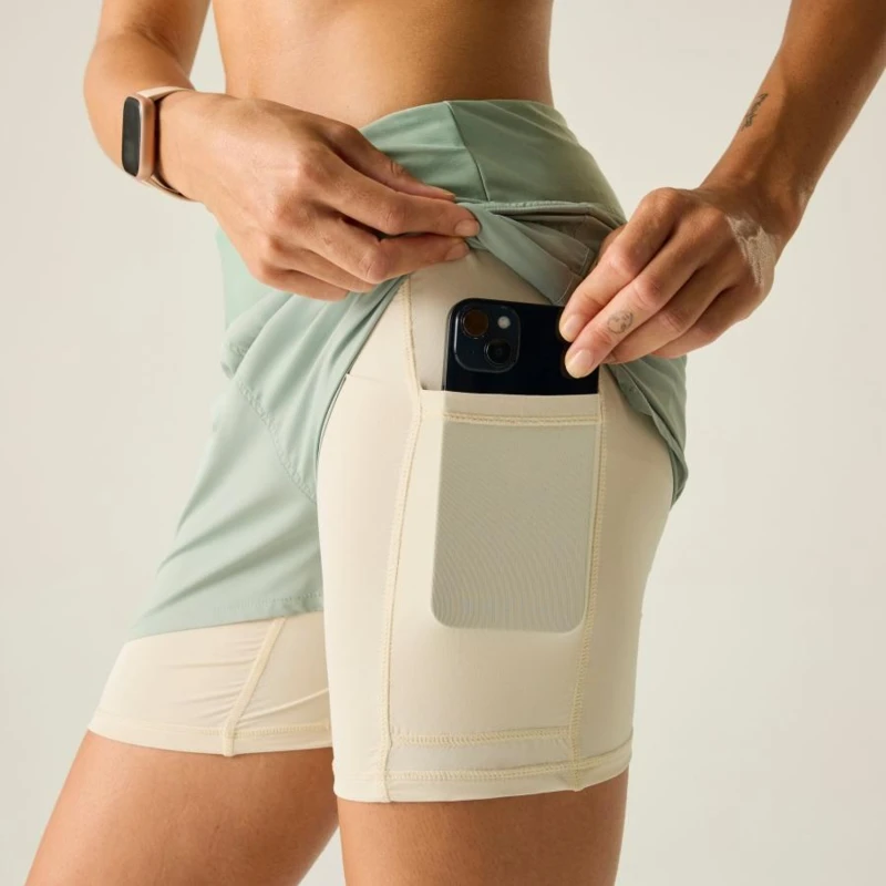 Női 2in1 short, Prémium női 2 az 1-ben sportshort külső könnyû réteg, rugalmas belső nadrág, Ez a női technikai rövidnadrág 2 az 1-ben kialakítással készült: könnyû, szőtt külső short és 4 irányban rugalmas belső short kombinációjával. A magas, rugalmas derékrész stabil illeszkedést biztosít, míg a hátsó cipzáras biztonsági zseb praktikus tárolási lehetőséget kínál. A belső nadrág antibakteriális szagkontroll kezeléssel készült, a fényvisszaverő részletek pedig fokozzák a láthatóságot., Főbb jellemzők:, 2 az 1-ben kialakítás: könnyû külső short és 4 irányban rugalmas belső short, Magas, rugalmas derékrész hátsó cipzáras biztonsági zsebbel, Szintetikus vegyszermentes antibakteriális szagkontroll kezelés, Telefonzseb a belső shorton, Fényvisszaverő nyomat részletek a jobb láthatóságért, Könnyû, mozgásszabadságot biztosító konstrukció, Ajánlott: Női sportshortként ideális futáshoz, edzéshez, túrázáshoz és intenzív szabadtéri programokhoz. Kiváló választás, ha fontos a stabil tartás, a kényelmes rétegezés és a biztonságos tárolás., Fenntarthatóság: A tartós konstrukció hosszú élettartamot biztosít rendszeres használat mellett is, csökkentve a gyakori ruhacsere szükségességét.