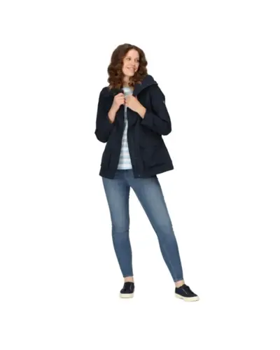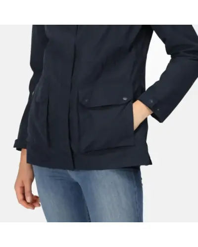 Női vízálló 5.000 mm membrános kabát, színtől függő anyagösszetétel:, Vízálló és lélegző Isotex 5000 poliészter anyag, Vízálló és lélegző Isotex 5000 100% poliészter mini cirmos csíkos anyag, Légáteresztő képesség: 5000 g/m?/24 óra, Tartós vízlepergető felület, Ragasztott varratok a teljes vízálló védelem érdekében, 100% poliészter taft mintás bélés, Belső biztonsági zseb, elcsomagolható kapucnival, Állítható mandzsetta patentos rögzítéssel, Állítható húzózsinóros derékrész, 2 dupla nyílású zseb kézmelegítő béléssel