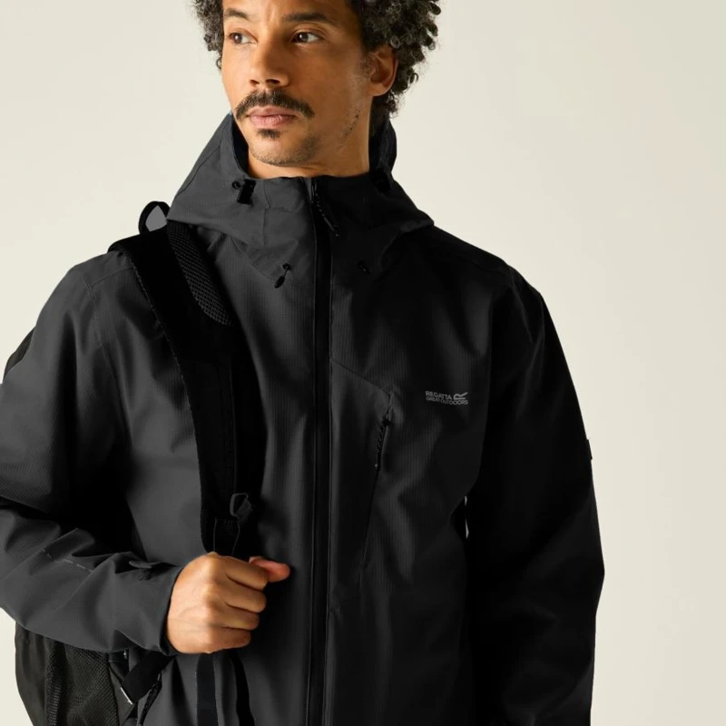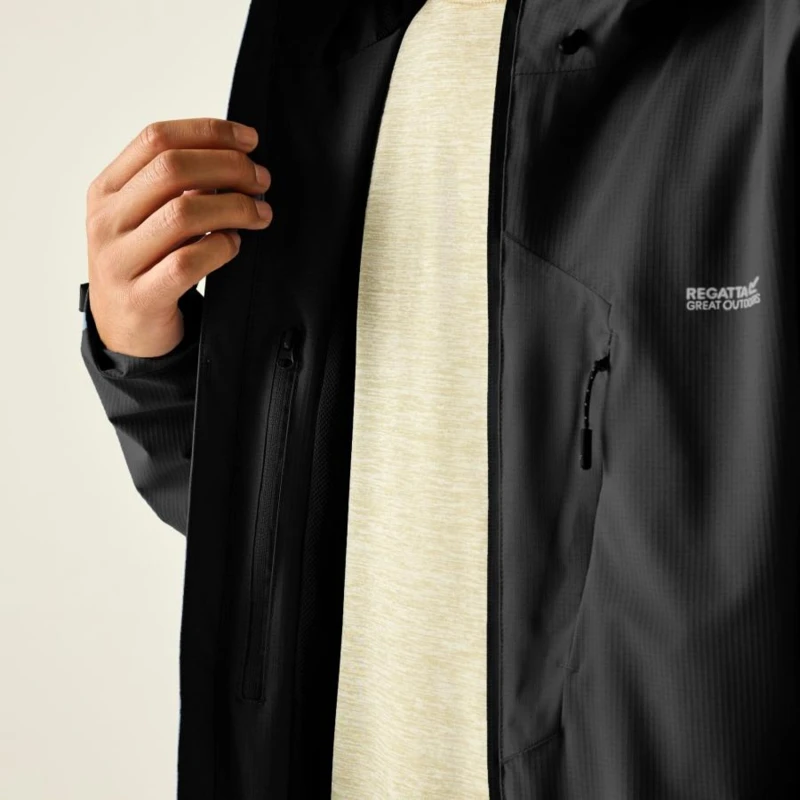Férfi esőkabát 30000 mm vízálló, Prémium férfi vízálló technikai kabát – ISOTEX 30000 membrán, 30 000 g/m?/24h légáteresztés, hálós bélés, Ez a férfi technikai héjkabát vízálló és légáteresztő ISOTEX 30000 membránnal készült, 100% újrahasznosított poliészter stretch ripstop anyagból. A 30 000 g/m?/24 óra légáteresztési teljesítmény intenzív mozgás közben is optimális komfortot biztosít. A tartós vízlepergető bevonat és a ragasztott varratok teljes körû vízálló védelmet nyújtanak, míg a hálós bélés fokozza a szellőzést és a kényelmet aktív használat során., Főbb jellemzők:, Vízálló, légáteresztő ISOTEX 30000 újrahasznosított 100% poliészter stretch ripstop anyag, Légáteresztési érték: 30 000 g/m?/24 óra, Tartós vízlepergető bevonat, Ragasztott varratok a teljes vízálló védelemért, Hálós bélés a fokozott komfortért, Beépített technikai kapucni állítókkal, Belső cipzáras zseb, Vízlepergető elülső középső cipzár belső takarással és vízelvezető csatornával, 2 alsó zseb vízlepergető cipzárral, Hónaljszellőző cipzárak a fokozott légáramlásért, Állítható mandzsetta, Állítható, gumizsinóros alsó szegély, Ajánlott: Férfi vízálló túrakabátként ideális túrázáshoz, trekkinghez, hegymászáshoz és intenzív szabadtéri programokhoz esős, szeles időjárási körülmények között. Kiváló választás, ha elsődleges szempont a maximális vízállóság és a kiemelkedő légáteresztés., Fenntarthatóság: Az újrahasznosított poliészter alapanyag csökkenti a környezeti terhelést, miközben magas technikai teljesítményt biztosít. A strapabíró konstrukció hosszú élettartamot garantál, minimalizálva a gyakori cseréből eredő környezeti hatásokat.