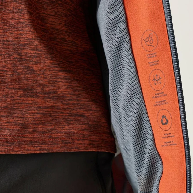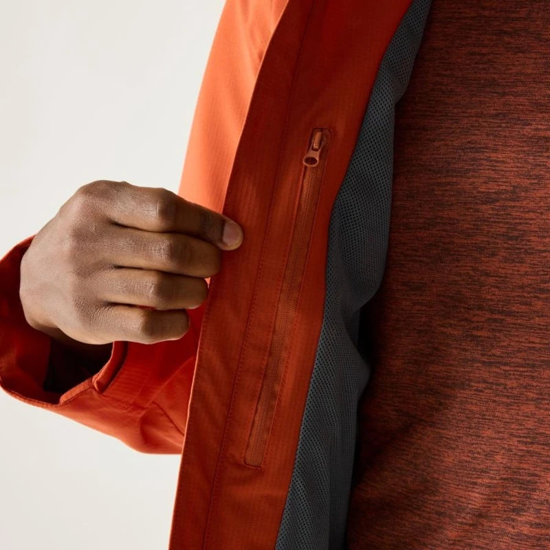 Férfi esőkabát 30000 mm vízálló, Prémium férfi vízálló technikai kabát ISOTEX 30000 membrán, 30 000 g/m?/24h légáteresztés, hálós bélés, Ez a férfi technikai héjkabát vízálló és légáteresztő ISOTEX 30000 membránnal készült, 100% újrahasznosított poliészter stretch ripstop anyagból. A 30 000 g/m?/24 óra légáteresztési teljesítmény intenzív mozgás közben is optimális komfortot biztosít. A tartós vízlepergető bevonat és a ragasztott varratok teljes körû vízálló védelmet nyújtanak, míg a hálós bélés fokozza a szellőzést és a kényelmet aktív használat során., Főbb jellemzők:, Vízálló, légáteresztő ISOTEX 30000 újrahasznosított 100% poliészter stretch ripstop anyag, Légáteresztési érték: 30 000 g/m?/24 óra, Tartós vízlepergető bevonat, Ragasztott varratok a teljes vízálló védelemért, Hálós bélés a fokozott komfortért, Beépített technikai kapucni állítókkal, Belső cipzáras zseb, Vízlepergető elülső középső cipzár belső takarással és vízelvezető csatornával, 2 alsó zseb vízlepergető cipzárral, Hónaljszellőző cipzárak a fokozott légáramlásért, Állítható mandzsetta, Állítható, gumizsinóros alsó szegély, Ajánlott: Férfi vízálló túrakabátként ideális túrázáshoz, trekkinghez, hegymászáshoz és intenzív szabadtéri programokhoz esős, szeles időjárási körülmények között. Kiváló választás, ha elsődleges szempont a maximális vízállóság és a kiemelkedő légáteresztés., Fenntarthatóság: Az újrahasznosított poliészter alapanyag csökkenti a környezeti terhelést, miközben magas technikai teljesítményt biztosít. A strapabíró konstrukció hosszú élettartamot garantál, minimalizálva a gyakori cseréből eredő környezeti hatásokat.