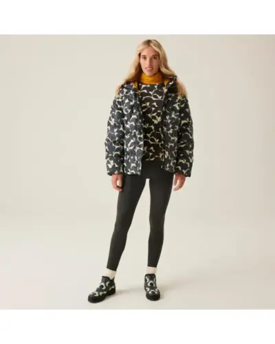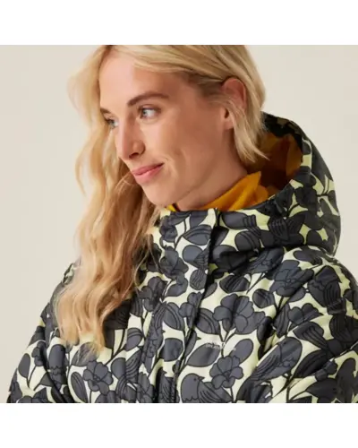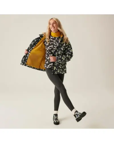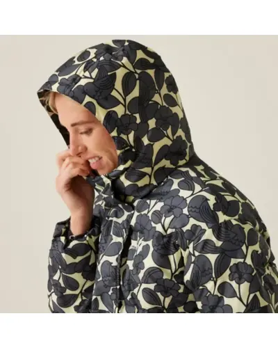 Női bélelt kabát, Anyag: 100% poliészter anyag, Kivitel: Tartós vízlepergető bevonat, Szigetelés: Nehéz súlyú, újrahasznosított szintetikus Warmloft pehelyhatású szigetelés, Bélés: Poliészter taft bélés, Kapucni: Beépített kapucni húzózsinóros állítókkal, Záródás: Középső elülső plaket patentos záródással, Dizájn: Túlméretezett (oversized) baffle steppelt kialakítás, Fenntarthatóság: Készült újrahasznosított anyagokból, Ez a kabát modern és meleg viseletet kínál, amelyet a nehéz súlyú Warmloft szigetelés biztosít. Az újrahasznosított szintetikus pehelyhatású szigetelés kiváló hőszigetelő képességet nyújt, miközben a tartós vízlepergető bevonat megvédi a viselőt a nedvességtől. A poliészter taft bélés kényelmes viseletet biztosít., A kabát beépített kapucnival rendelkezik, amely húzózsinóros állítókkal személyre szabható, így további védelmet nyújt az időjárás ellen. A középső elülső plaket patentos záródással könnyû kezelhetőséget és stílusos megjelenést biztosít. A túlméretezett baffle steppelt kialakítás modern és elegáns megjelenést ad a kabátnak.