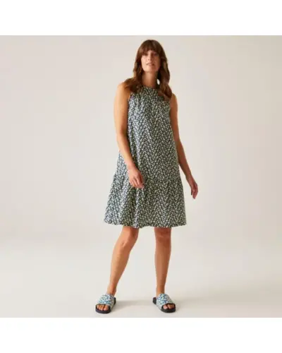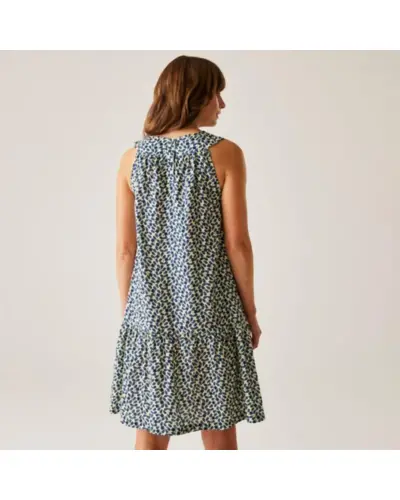 Női ruha, Anyag: 100% BCI pamut poplin (110 g/m?), légáteresztő és fenntartható, Nyakkialakítás: Magas, ívelt „halo” nyakrész, Záródás: 3 gombos gombolópánt, Szabás: Ráncolt alsó panel a nőies megjelenésért, Minta: Orla Kiely által tervezett egyedi, teljes felületû nyomatok, Ez a stílusos és fenntartható ruha tökéletes választás a mindennapokra vagy elegánsabb alkalmakra. Kényelmes, légies anyaga és egyedi dizájnja egyszerre biztosít kifinomultságot és egyedi megjelenést.