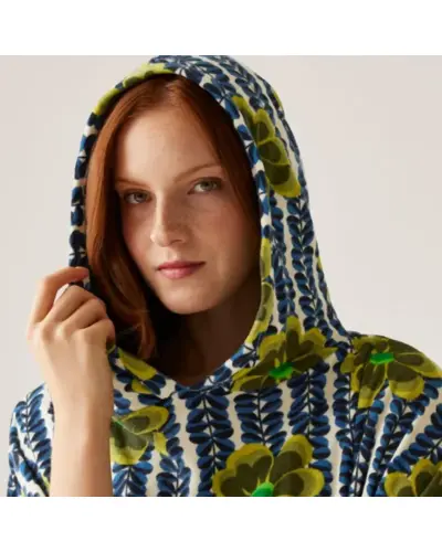 Női frotír köntös, 220 g/m2 100% poliészter frotir anyag, fix kapucni
