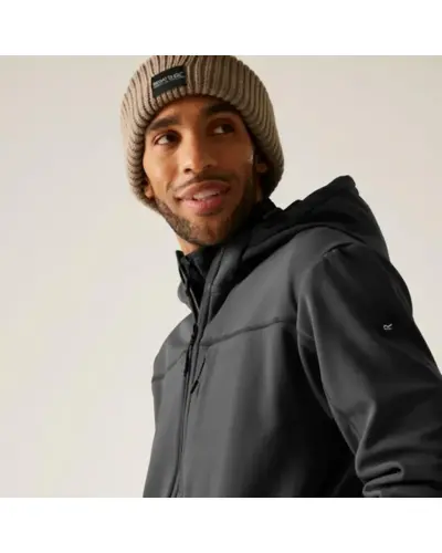 Férfi softshell , Ez a 340 g/m? vastagságú Softshell dzseki tökéletes társ az őszi-téli szabadtéri kalandokhoz. A puha polár belső réteg kellemes meleget nyújt, míg a kívülről szélálló és vízlepergető anyag hatékony védelmet biztosít az időjárással szemben., A rugalmas szövésû külső anyag szabadságot ad a mozgásban, így ideális túrázáshoz, mindennapi viselethez vagy sportos városi programokhoz is. A három praktikus cipzáras zseb segít, hogy minden fontos dolgot kéznél tarthass., 94% poliészter / 6% elasztán stretch Softshell polár belső réteggel – 340 g/m?, Szélálló és vízlepergető kialakítás, Fix kapucni állítható zsinórokkal, 2 alsó és 1 mellzseb cipzárral, Rugalmas mandzsetta és szegély a kényelmes illeszkedésért, Újrahasznosított anyagok felhasználásával készült, ? Megbízható védelem enyhébb eső és szél ellen, ? Kényelmes viselet akár egész nap, ? Környezettudatos választás újrahasznosított anyagból