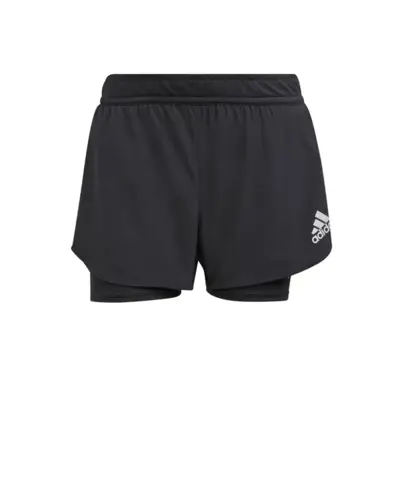 When the temperatures start to climb, switch out your leggings for these adidas two-in-one running shorts. Soft and breathable, they have inner tights underneath for a supportive feel. They\'re cut to stay in place with a high-rise back and a drawcord.
