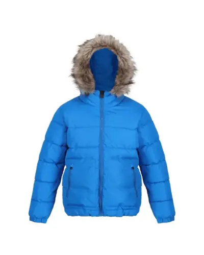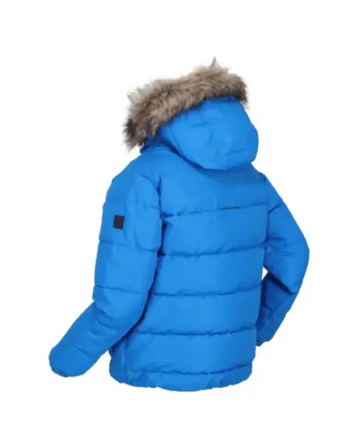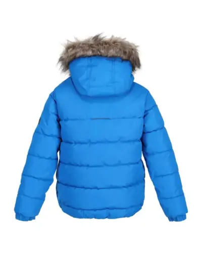 Junior bélelet télikabát, 100% polyester micro poplin, 100% polyester taft bélés a karokon és a testrészen, Thermoguard szigetelő bélés, fix kapucni mûszőrmével, 1 cipzáras mellzseb, 2 cipzáras alsó mély zseb, rugalmas szegélyek