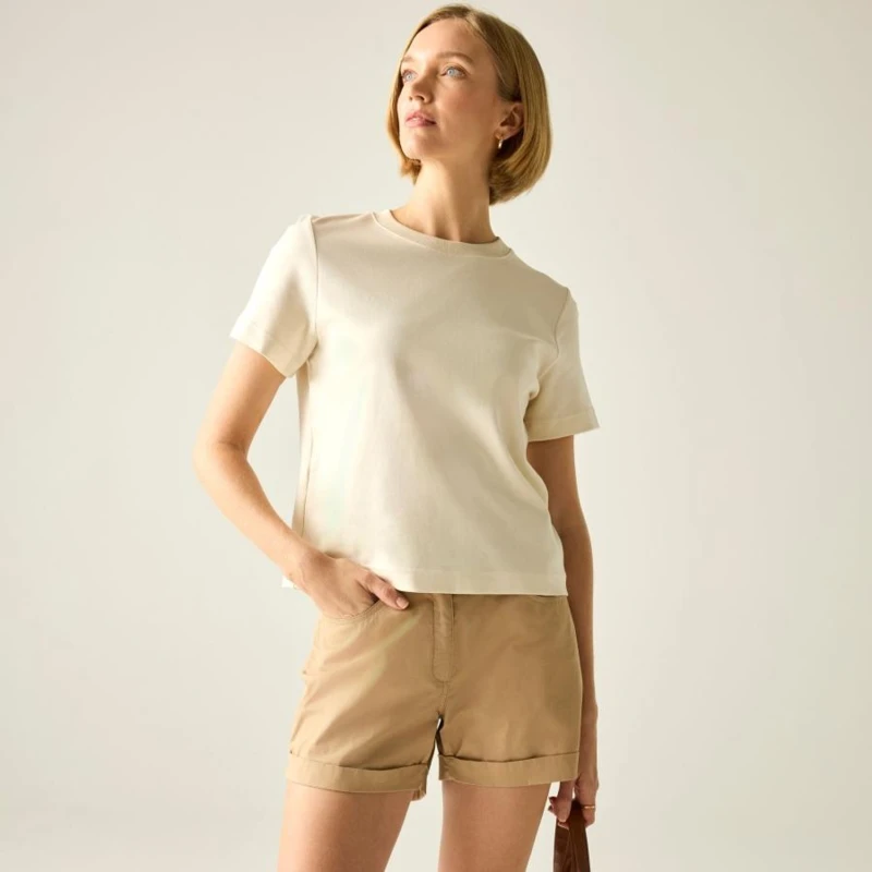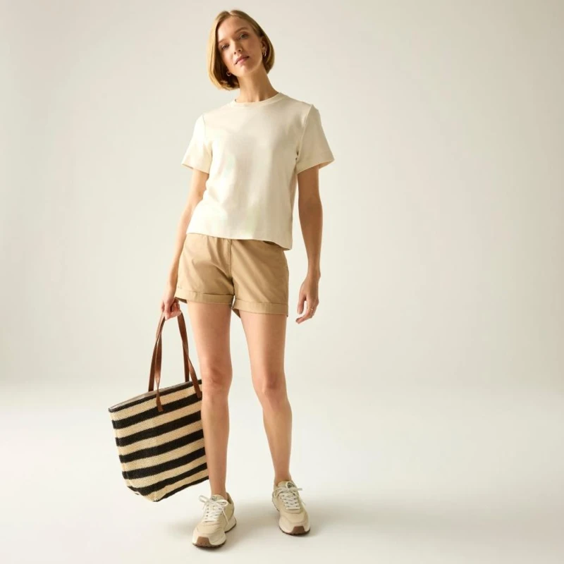 Női short, Coolweave 100% pamut poplin anyag, 2 elülső zseb, 1 hátsó zseb, füllel és gombos rögzítéssel, felhajtható szegély