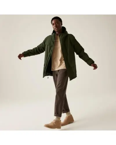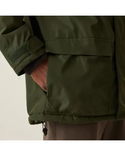Férfi bélelt vízálló kabát 10.000 mmm, Ez a vízálló és lélegző kabát ideális választás hideg és nedves időjárási körülményekhez. , Anyag: Vízálló és lélegző Isotex 10000 újrahasznosított, koptatott poliészter anyag., Lélegzőképesség: 10,000g/m?/24 óra., Felületkezelés: Tartós vízlepergető bevonat., ragasztott varrások: Teljes vízállóságot biztosítanak., Szigetelés: Közepes súlyú újrahasznosított Thermoguard szigetelés., Bélés: Poliamid bélés és baffle panelek (szigetelő rekeszek) a jobb hőmegtartás érdekében., Belső cipzáras biztonsági zseb, 1 cipzáras mellzseb, 1 mellzseb (dekoratív), 2 alsó patch zseb oldalsó kézmelegítő zsebekkel, Kapucni: Integrált kapucni állítókkal., Mandzsetták: Állítható mandzsetták a jobb illeszkedés érdekében., Alsó szegély: Állítható shockcord szegély a testreszabott illeszkedésért., Fenntarthatóság: Újrahasznosított anyagokból készült., Ez a kabát tökéletes választás azok számára, akik meleg, kényelmes és környezetbarát viseletet , keresnek a hideg, szeles és nedves időjárásban történő szabadtéri tevékenységekhez.