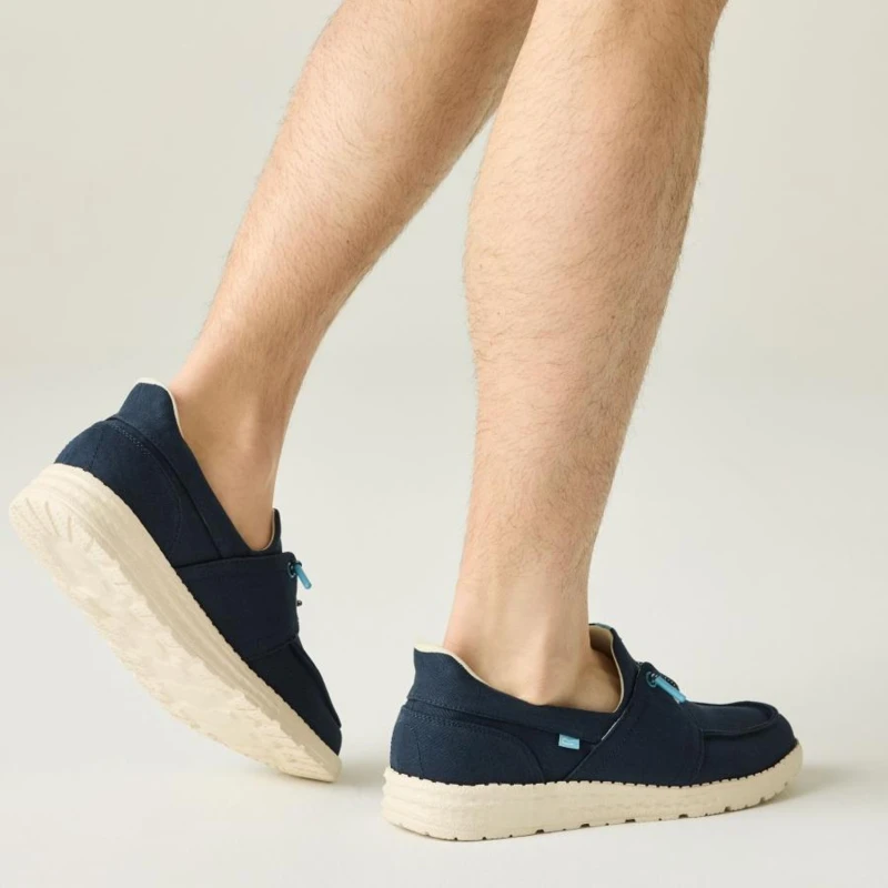 Férfi vászon cipő, Prémium vászon cipő könnyû EVA talppal, egész napos komforttal, Ez a légáteresztő, puha vászon felsőrésszel készült cipő ideális választás meleg időben és mindennapi viseletre. Könnyû, rugalmas kialakítása és a kényelmes talpszerkezet egész napos komfortot biztosít., Főbb jellemzők:, Légáteresztő, puha vászon felsőrész, TECFOAM nyitott cellás talpbetét a kiemelkedő talp alatti kényelemért, Könnyen felvehető, kényelmes kialakítás, Teljes EVA külső talp a könnyû és rugalmas lépésérzetért, Ajánlott:, Mindennapi viseletre, utazáshoz, nyári programokhoz és városi használatra. Ideális választás azok számára, akik könnyû, kényelmes és jól szellőző cipőt keresnek., Fenntarthatóság:, Tartós kialakítása hozzájárul a hosszú élettartamhoz, csökkentve a gyakori cseréből adódó környezeti terhelést.