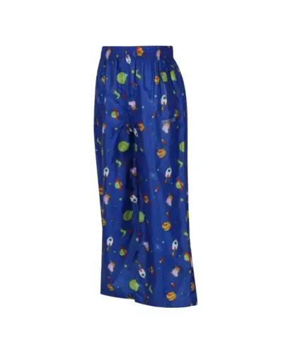 gyerek esőnadrág 5.000 mm, Isolite - Könnyû, 5.000 mm-ig vízálló és lélegző poliamid anyag, Lélegző érték: 5.000g/m2/nap, Tartós víztaszító felület, Ragasztott varrások, Teljes felületén mintás, Gumírozott derékrész, Két oldal zseb, Elcsomagolható