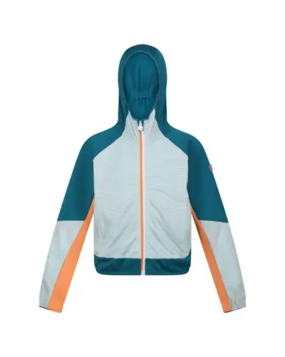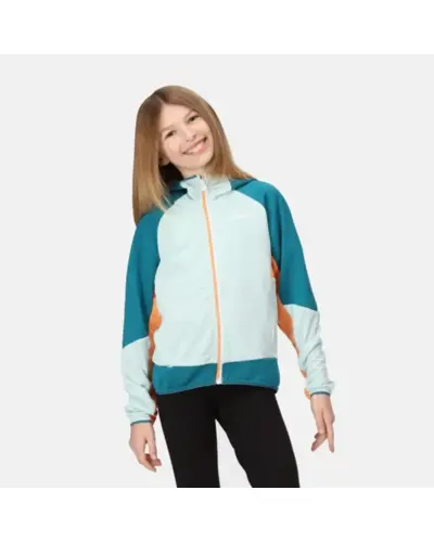 Gyerek extol felső, 220 g/m2-es újrahasznosított 96% poliészter/4% elasztán rácsos polár anyag, Extol Stretch panelbetétek - 90% poliészter/10% elasztán, fix kapucni, 2 cipzáras zseb, rugalmas anyagból készült szegély a kapucni nyílásán, mandzsettán