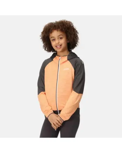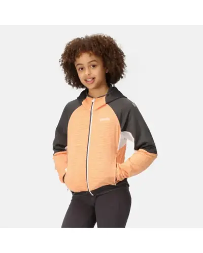 Gyerek extol felső, 220 g/m2-es újrahasznosított 96% poliészter/4% elasztán rácsos polár anyag, Extol Stretch panelbetétek - 90% poliészter/10% elasztán, fix kapucni, 2 cipzáras zseb, rugalmas anyagból készült szegély a kapucni nyílásán, mandzsettán