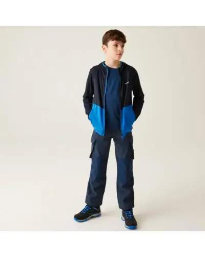 Gyerek extol pulóver, Anyag: 220g/m? súlyú, újrahasznosított, 96% poliészter és 4% elasztán anyag, rácsos polár béléssel a hátoldalon, amely meleget és kényelmet biztosít., Rugalmas betétek: Extol Stretch panel betétek, amelyek 90% poliészterből és 10% elasztánból készültek, biztosítva a rugalmasságot és a mozgásszabadságot., Kapucni: Beépített kapucni elasztikus szegéllyel a jobb illeszkedés érdekében., Cipzárvédő: Cipzárvédő, amely növeli a kényelmet viselés közben., Zsebek: Két cipzáras kézzseb a biztonságos tárolás érdekében., Rugalmas szegélyek: Rugalmas szegélyek a kapucni nyílásánál, a mandzsettákon és a szegélynél, amelyek növelik a kabát illeszkedését és a kényelem szintjét., Biztonsági elemek: Fényvisszaverő szegélyek, amelyek növelik a láthatóságot és biztonságot biztosítanak gyenge fényviszonyok között., Nyomtatott névcímke: Nyomtatott névcímke elérhető 8 éves korig, amely segíti a kabát azonosítását., Ez a kabát ideális választás változó időjárási körülmények között, mivel rugalmas, meleg, kényelmes, és biztonsági funkciókkal is rendelkezik, miközben környezetbarát anyagokat használ.
