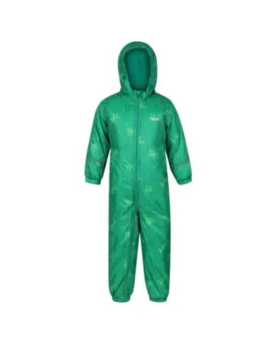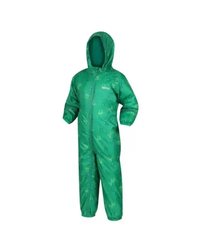 gyerek kezeslábas, vízállló és légáteresztő könnyû, mintás Isolite anyag, tartós víztaszító felület, hegesztett varrások, thermoguard hőszigetelő töltet, polár bélés törzsön, kapucniban, fix kapucni, rugalmas derékrész és mandzsetta, fényvisszaverő részek