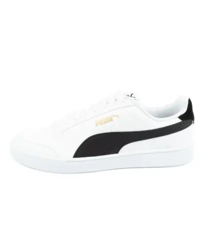 The Puma Shuffle is the new interpretation of a classic Puma court icon. This 80s basketball inspired silhouette features a soft synthetic leather upper with a suede heel overlay as well as perforation details on the vamp. On top it offers a great fit. This clean yet stylish everyday trainer is made for daily wear!