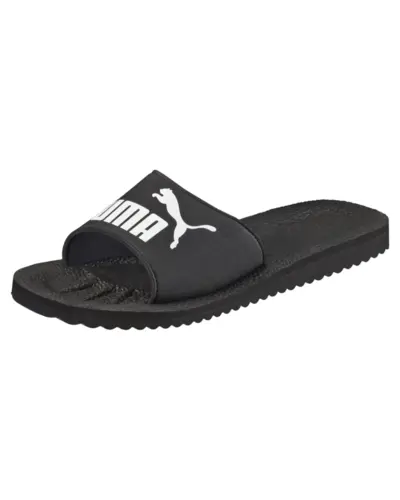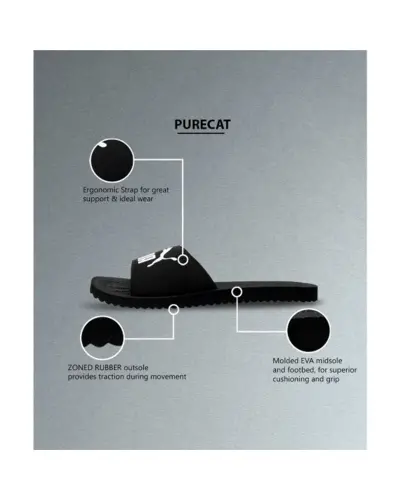 A Puma Purecat férfi papucs úszómedencébe és otthoni használatra egyaránt tökéletes lesz. A modell kiváló minőségû szintetikus anyagokból készült. A papucsok tapadós, csúszásmentes talppal rendelkeznek. A pánton nagy fehér logó található. A kényelmes tépőzáras rögzítés lehetővé teszi a szárnyak könnyû beállítását a lábhoz, a nagy, fehér logó pedig egyedi, sportos hangulatot kölcsönöz nekik.
