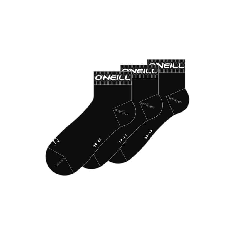 Az ONeill Quarter 3-pack uniszex zokni második bőrként simul lábadhoz, tökéletes illeszkedést biztosítva cipődben. A zokni a hosszútávú használat és a tartósság érdekében megerősített részekkel rendelkezik a kritikus pontokon. Megfelelő tartást ad lábfejednek és bokádnak, így enyhítve a lábakra nehezedő folyamatos megterhelést. Puha tapintású, könnyû, jól szellőző pamutkeverék anyaga kellemes viseletet biztosít melegben, valamint hûvös időben egyaránt, hiszen kiváló légáteresztő és nedvszívó képességgel rendelkezik. A pamut és a poliészter kombinációja egy rendkívül tartós, nagyon sima felületû anyagot hoz létre, ezért a zokni könnyen, egyszerûen tisztítható. A kiváló formatartást és rugalmasságot adó elasztán szálat a zokni részeibe egyenlő sûrûséggel kötik bele. A csomagban 3 pár zokni található.
