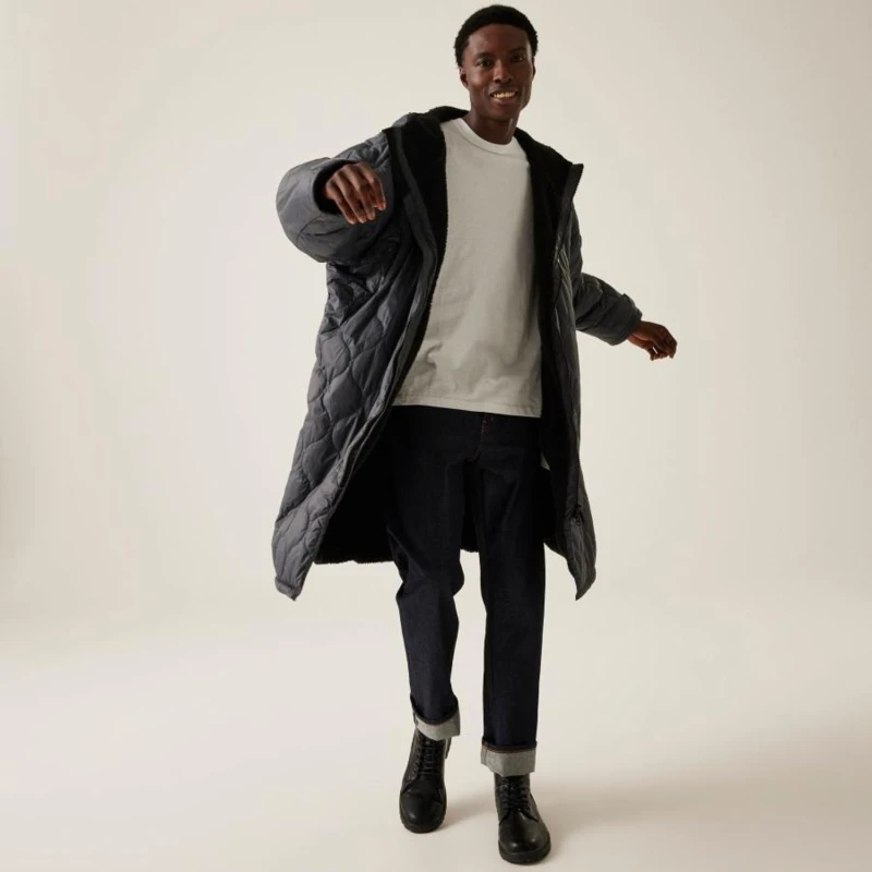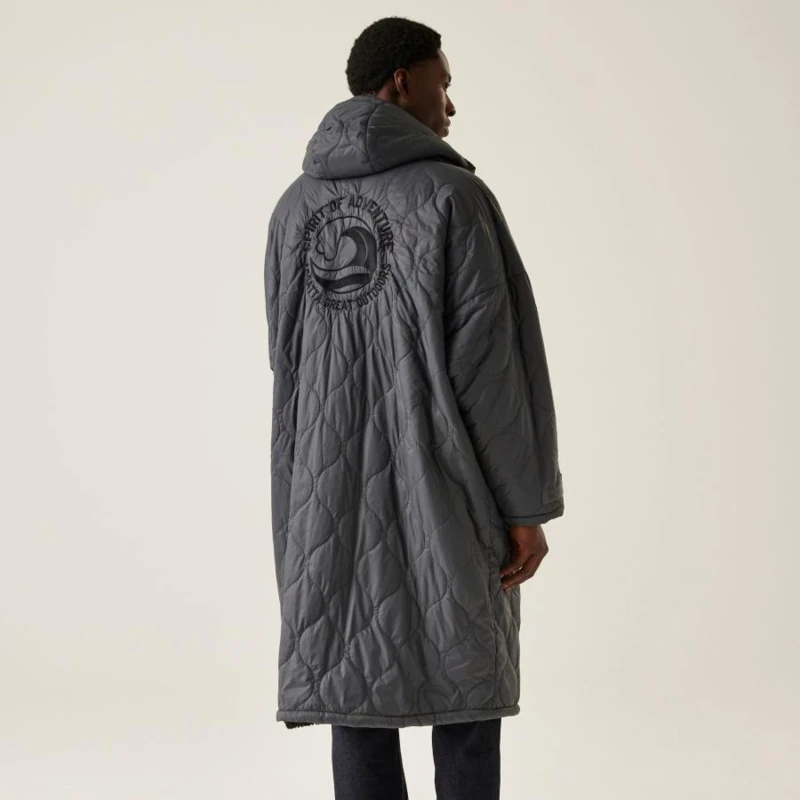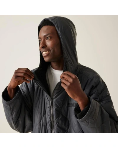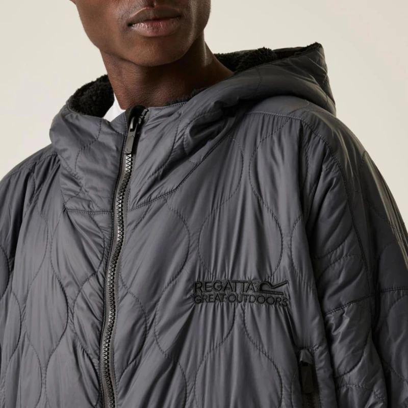Női steppelt poncsó, 100% nylon vízlepergető steppelt anyaggal , Tartós vízlepergető felület, polár béléssel, Belső biztonsági zseb, fix kapucni, 2 alsó cipzáras zseb, Állítható mandzsetta, Hátoldalon hímzés