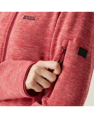 Női extol pulóver, Ez a Regatta márkájú női pulóver ideális választás mindennapi használatra és szabadtéri tevékenységekhez., 240 g/m? újrahasznosított polár kétféle kötött hatással:, 85% poliészter, 13% viszkóz, 2% elasztán (marl kötött hatású): , Ez a kombináció melegséget, kényelmet és tartósságot biztosít., 98% poliészter, 2% elasztán (egyszínû kötött): Ez az anyag extra rugalmasságot és mozgásszabadságot biztosít., Panel betétek:, Újrahasznosított Extol Stretch anyag: 90% poliészter, 10% elasztán. Ezek a betétek növelik a pulóver , rugalmasságát és szellőzését, különösen a nagy igénybevételnek kitett területeken, mint például a hónalj., Speciális hónaljbetétek biztosítják a maximális mozgástartományt és korlátlan kar emelést. , Ez különösen fontos sportolás vagy aktív tevékenységek során., Fix kapucni megvédi a fejet a szél és az eső ellen, miközben nem zavarja a mozgást., Zsebek: 2 cipzáras alsó zseb és 1 cipzáras ujjzseb biztonságos tárolási lehetőséget kínálnak kisebb , tárgyak, például telefon, kulcsok vagy pénztárca számára., A kapucni nyílásánál, a mandzsettákon és a szegélynél található rugalmas szegélyek biztosítják , a szoros illeszkedést és megakadályozzák a hideg levegő bejutását., Ez a női pulóver tökéletes választás túrázáshoz, kempingezéshez, hegymászáshoz és egyéb kültéri , tevékenységekhez. A kiváló mozgásszabadságot biztosító kialakítás és a meleg, kényelmes anyag kombinációja , tökéletesen megfelel az aktív életmódot élők igényeinek.