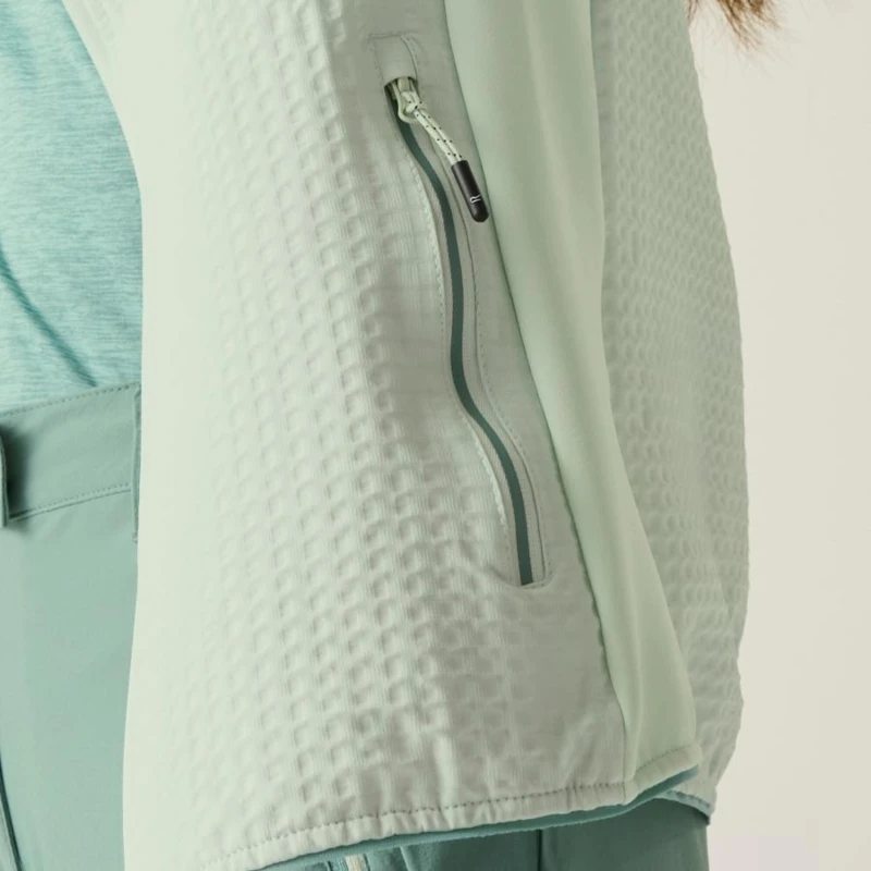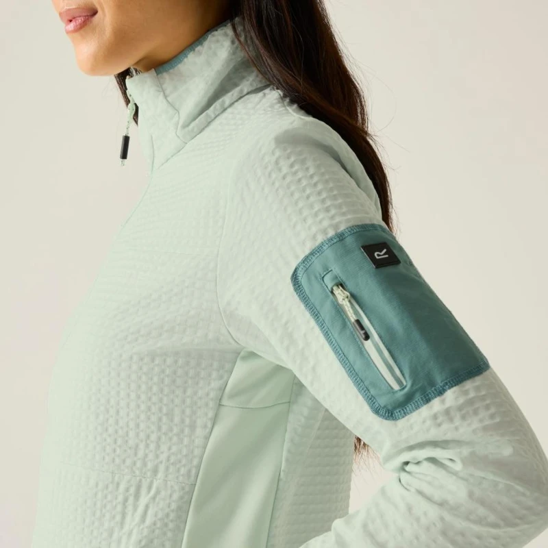 Női polár felső, Prémium női technikai polár felső – grid brushed back fleece, Extol Stretch panelek, Reach Technology, Ez a női technikai polár felső 90% poliészter / 10% elasztán woven fleece anyagból készült, 200 g/m? súlyban, rácsszerkezetû, bolyhozott hátoldallal a hatékony hőszigetelés érdekében. Az Extol Stretch panelek fokozzák a rugalmasságot és az illeszkedést, míg a Reach Technology hónaljbetét maximális mozgástartományt és szabad karmozgást biztosít aktív használat során., Főbb jellemzők:, 90% poliészter / 10% elasztán woven fleece grid bolyhozott hátoldallal, 200 g/m?, Extol Stretch panelbetétek, 90% poliészter / 10% elasztán, Reach Technology hónaljbetét a maximális mozgásszabadságért, 2 alsó cipzáras zseb, 1 cipzáras ujjzseb, Rugalmas szegély a kapucnin, a mandzsettán és az alsó részen, Ajánlott: Női technikai polár felsőként ideális túrázáshoz, trekkinghez, kiránduláshoz és aktív szabadtéri programokhoz. Kiváló középréteg hûvösebb időben, illetve önálló rétegként átmeneti időszakban., Fenntarthatóság: A tartós, rugalmas poliészter alapanyag hosszú élettartamot biztosít, csökkentve a gyakori ruhacsere szükségességét. A minőségi konstrukció több szezonon át megbízható teljesítményt nyújt.