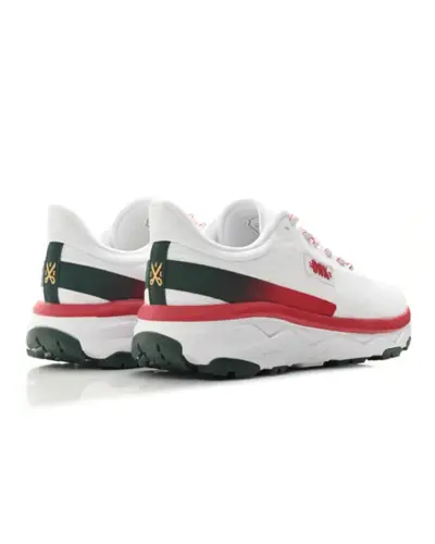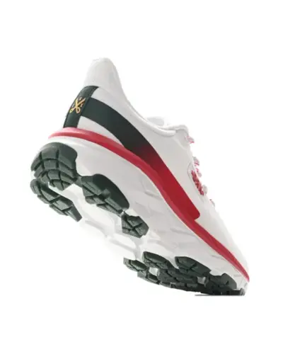 Az új Dorko Rapid egy funkcionális cipő, amely légáteresztő felsőrésszel és megerősített cipőfûző bújtatókkal rendelkezik, garantálva a tartósságot. Az EVA anyagból készült talprész puha és rugalmas érzést nyújt, míg a beépített Ortholight talpbetét stabilizálja a lábfejet. A talp alsó részén kopásálló réteg található, amely növeli a cipő élettartamát és tartósságát. A kialakítása optimális tapadást biztosít, miközben csillapítja az ízületeket, így kényelmes és hatékony futást tesz lehetővé. A nemzeti színû részletek és az arany márkajelzés kölcsönöz eleganciát a cipőnek.
